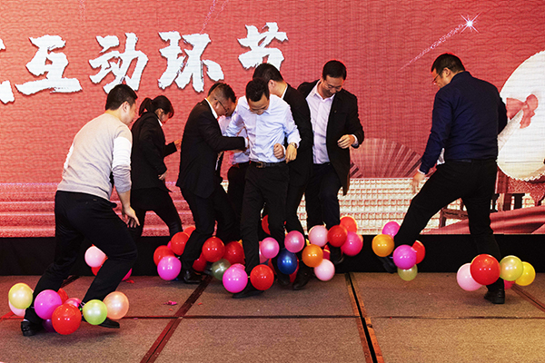 “5、4、3、2、1!”聯(lián)歡會在異口同聲、振奮人心的倒計時中,緩緩拉開帷幕。熱鬧的游戲,激動人心的抽獎交錯進行。一個個氣球爆破的響聲,彷佛在為建材事業(yè)部2019年卓越的成績喝彩,在場的每一個人臉上都洋溢著燦爛的笑容。是啊,這驕人業(yè)績的背后,是多少人默默忙碌奔波的身影,是多少人通宵達旦的苦耕,是多少人獨在異鄉(xiāng)的別離。正是這些盈盈的笑臉,是他們堅守在自己的崗位上,為事業(yè)部的每一次前進,卯足了干勁,他們是建材事業(yè)部可愛的主人翁,是西礦環(huán)保的寶貴財富與力量之源。